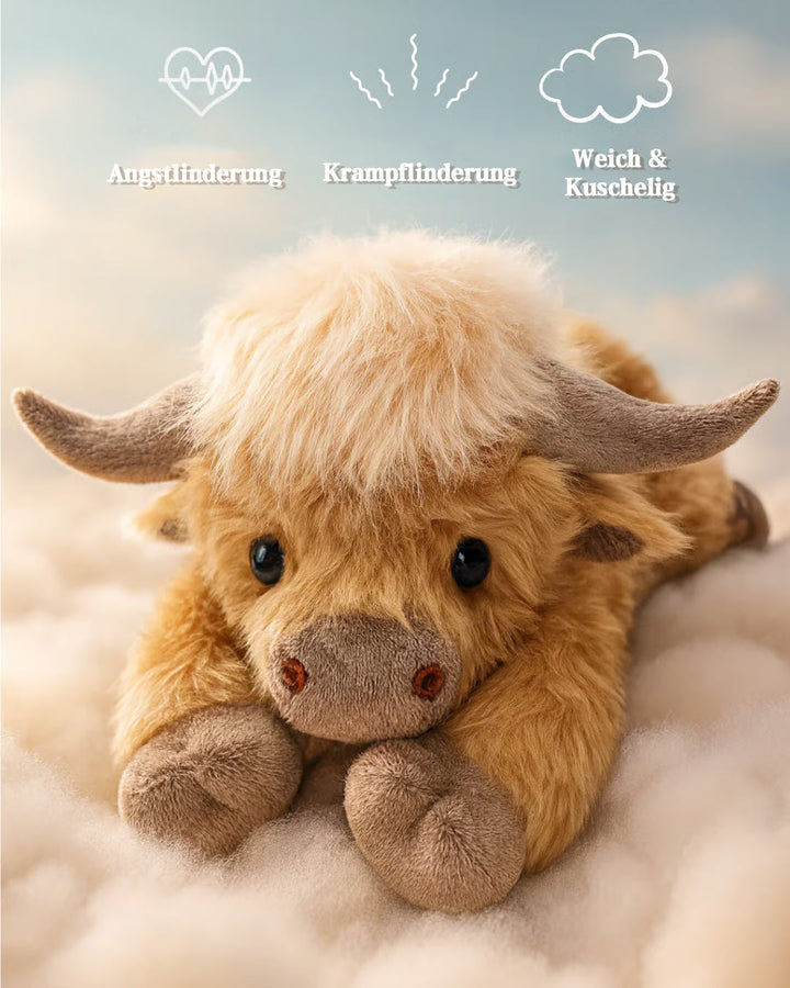 Que ce soit pour apaiser un inconfort ou pour se blottir pour dormir, notre peluche vache Highland offre chaleur, réconfort et douceur.