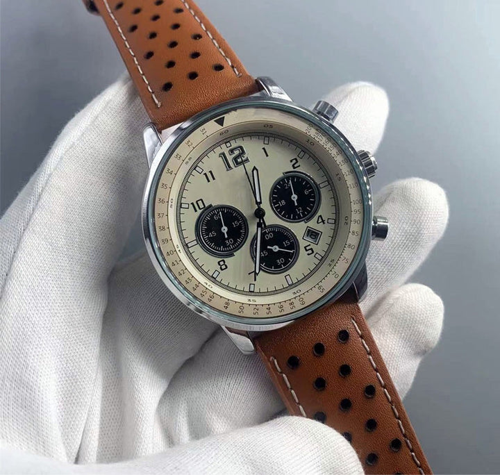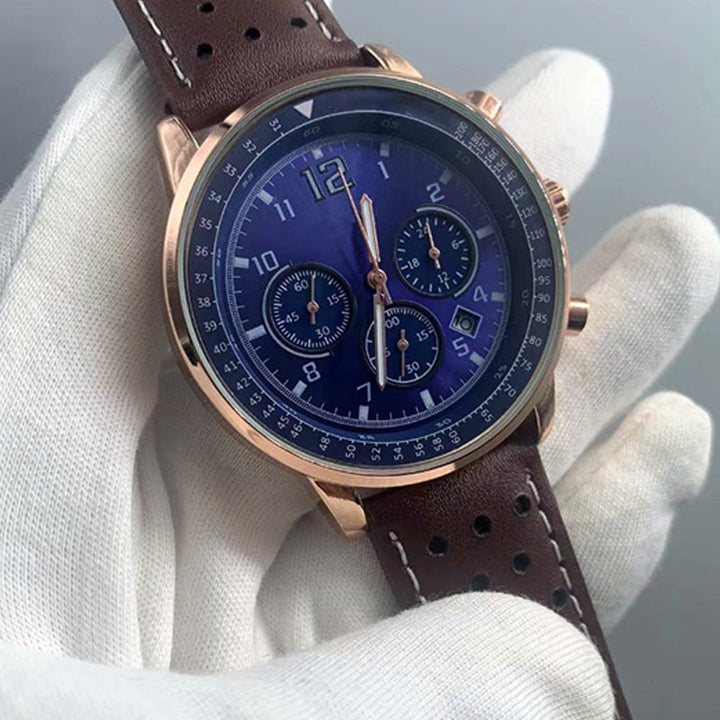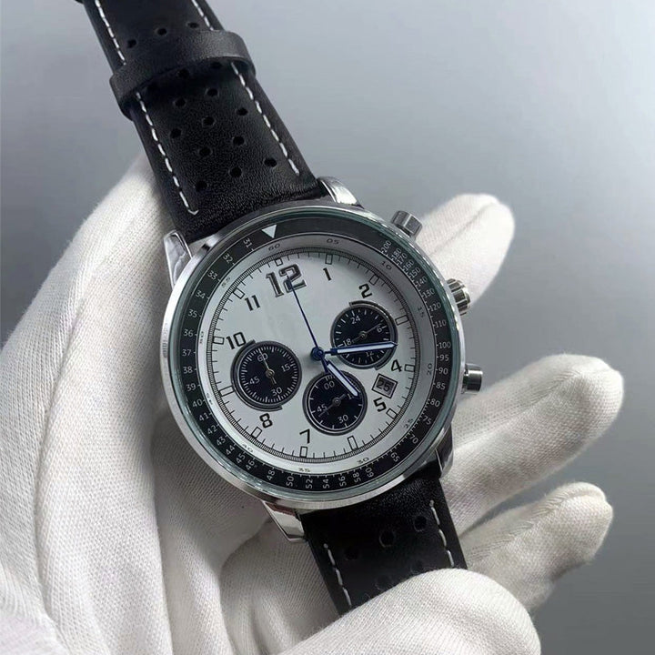 AFFICHAGE MULTIFONCTIONNEL : Cette montre est dotée d'un chronographe à six aiguilles, avec de petits cadrans entièrement fonctionnels, garantissant un suivi du temps fluide, des mesures précises et des performances fluides et fiables pour une expérience optimale.